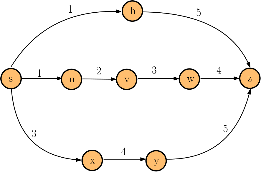 \(P = \langle s \rightarrow u \rightarrow v \rightarrow w \rightarrow z \rangle \)